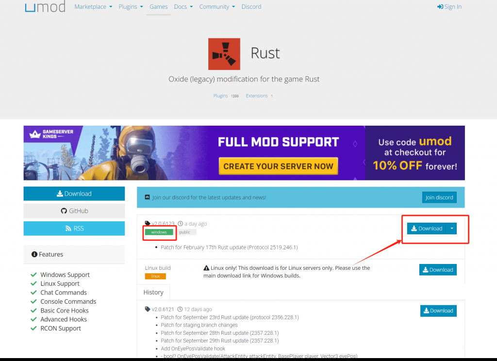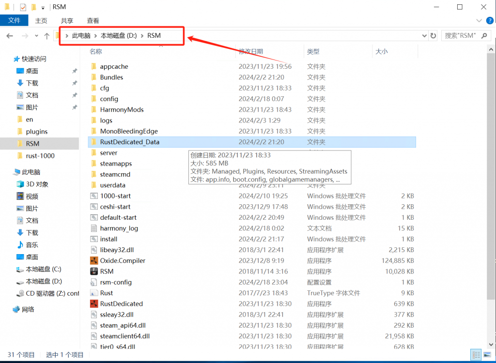 浏览器打开umod插件网站(需要科学上网!),选择windows版本下载,下载好打开压缩包复制RustDedicated_Data文件夹粘贴到D:\RSM目录下,替换掉旧的文件
