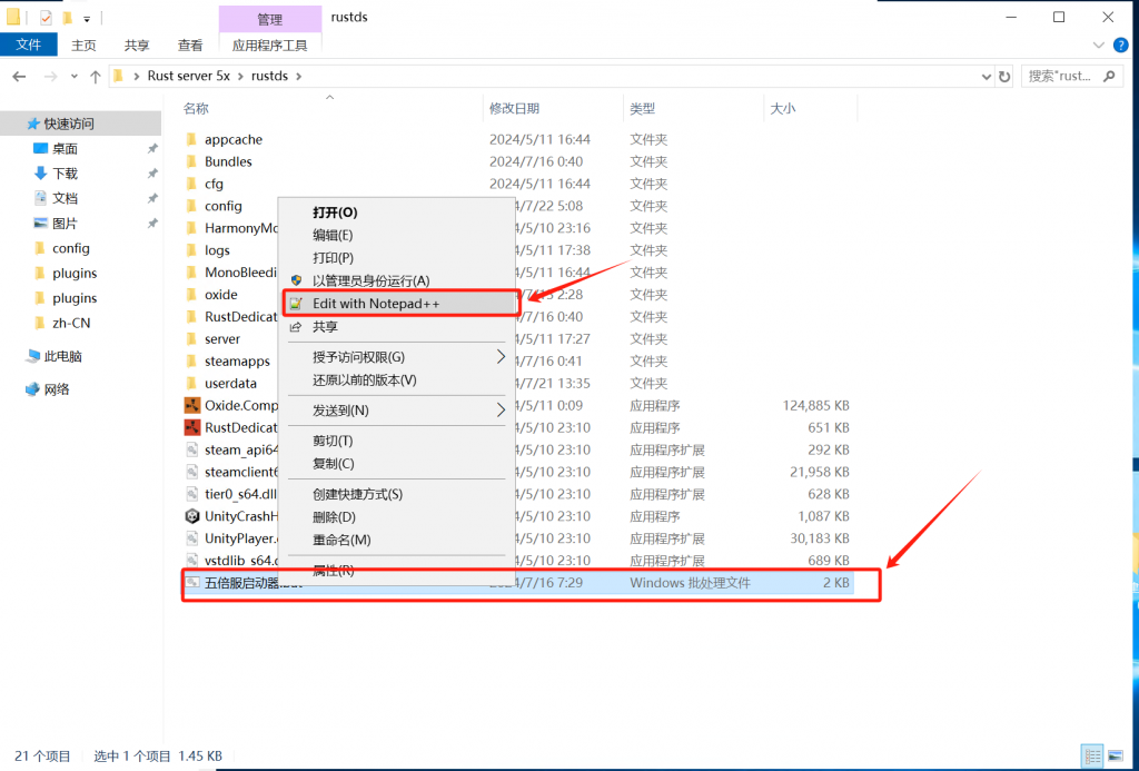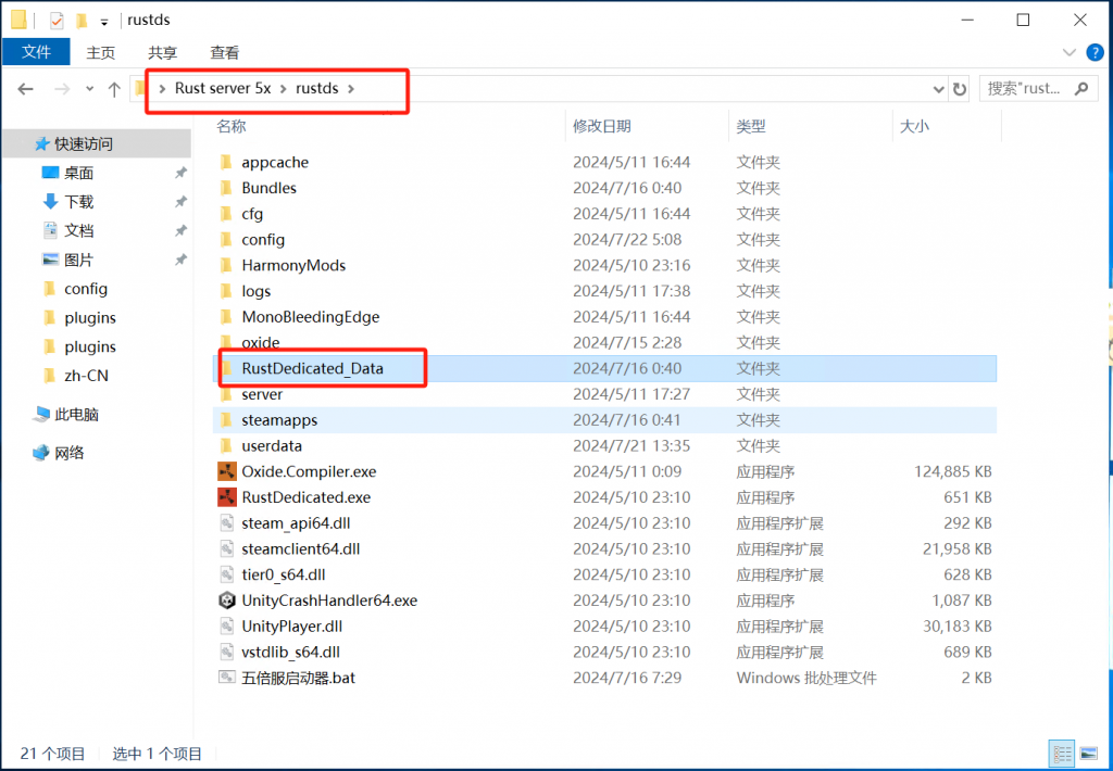 浏览器打开umod插件网站(需要科学上网!),选择windows版本下载,下载好打开压缩包复制RustDedicated_Data文件夹粘贴到 Rust server 5x\rustds 目录下,替换掉旧的文件夹