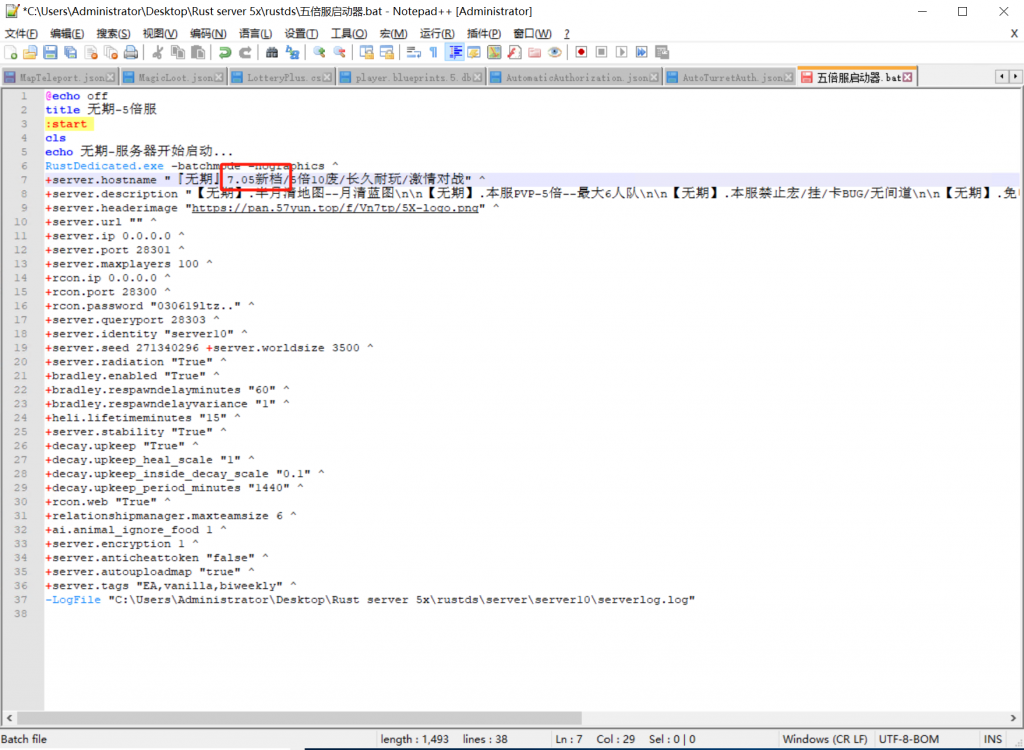 右键五倍服启动文件用Notepad++打开,修改下新档日期,然后保存关闭